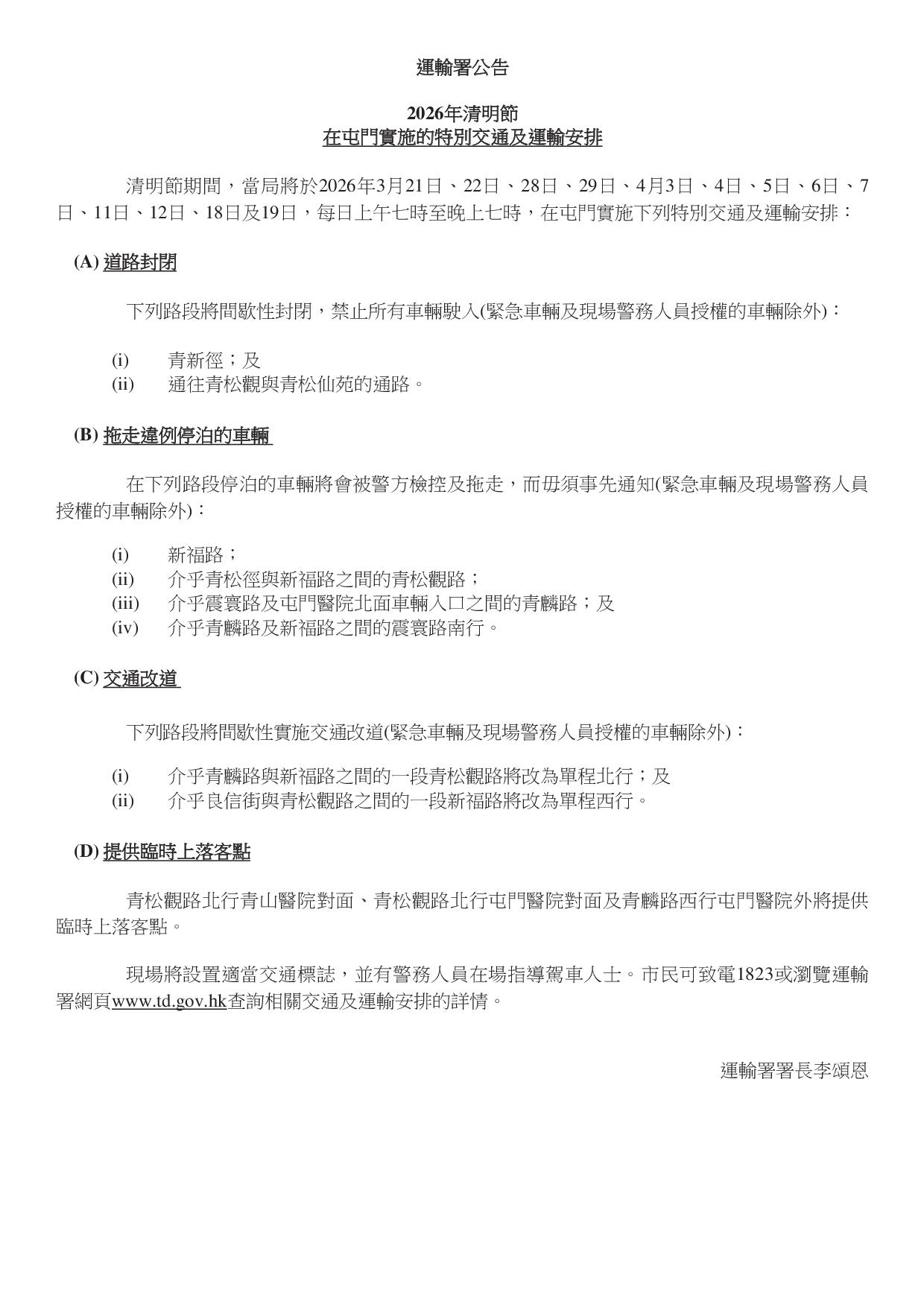 運輸署公告
